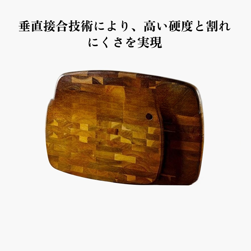 不規則継ぎまな板は、丈夫な天然木素材と独自のデザインで耐久性抜群。キッチンにおしゃれなアクセントをプラスし、使いやすさも向上します。