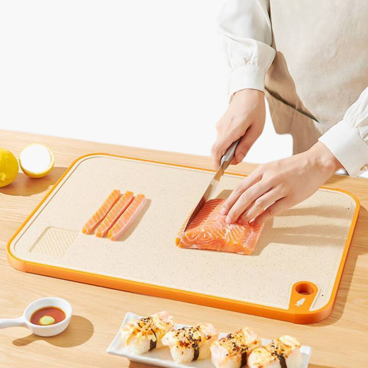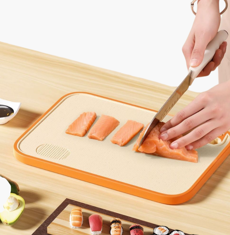 抗菌仕様の防カビまな板。清潔を保ちやすく、臭い移りが少ない。お手入れ簡単で長持ち。